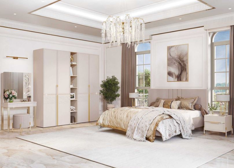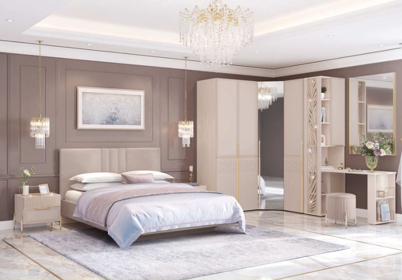Инновационные технологии и исключительное мастерство исполнения, сделали спальню «Флоренция» магнитом для притяжения внимания. Изысканный акцент в цвете «сатиновое золото», как и положено благородному металлу, красиво переливается и не тускнеет, а стильная фрезеровка придает спальне дух роскоши и элегантности. Авторский дизайн фасадов, стекло с россыпью «золота» на крышках комодов, тумбы и ажурных решеток перенесет обладателей спальни в атмосферу «жемчужины» Италии!