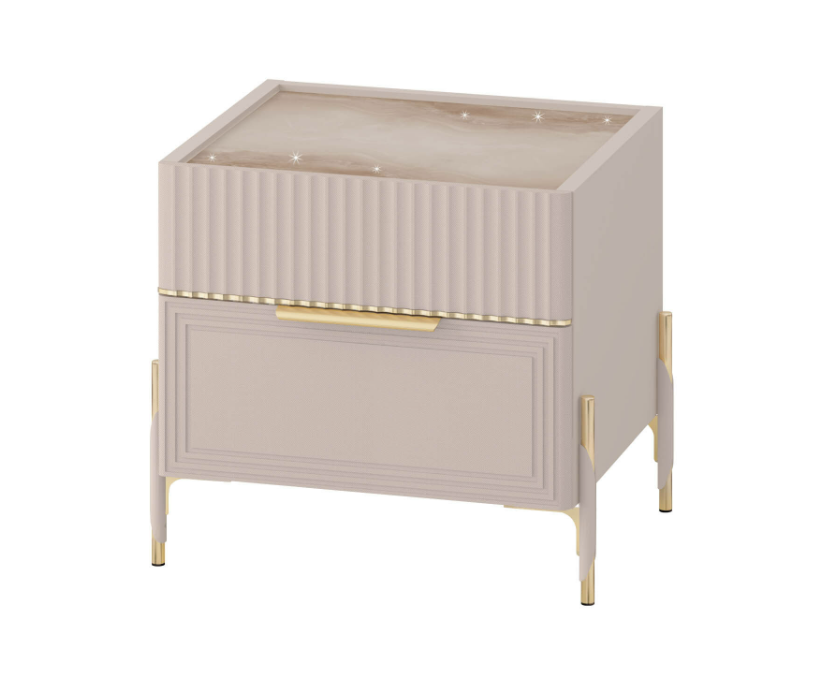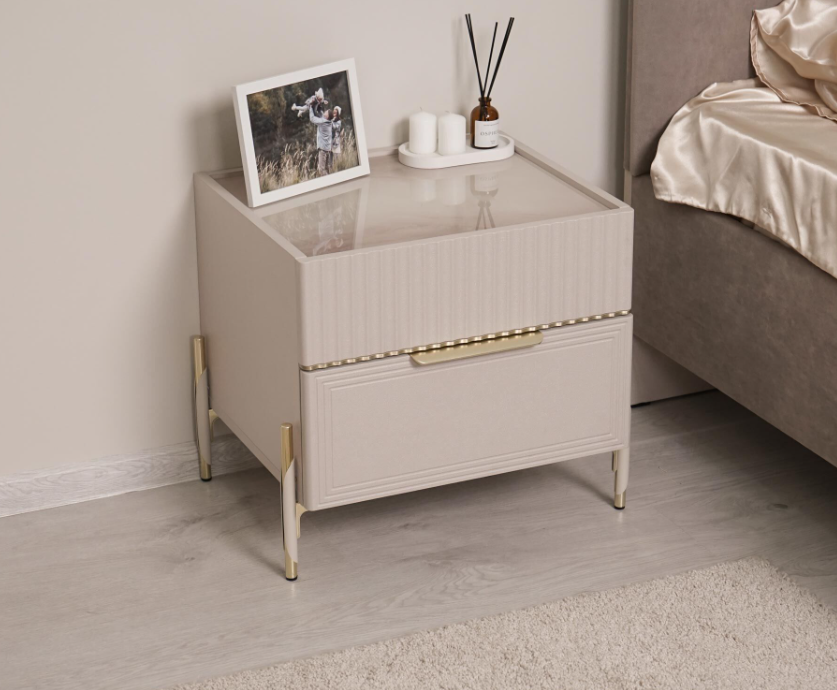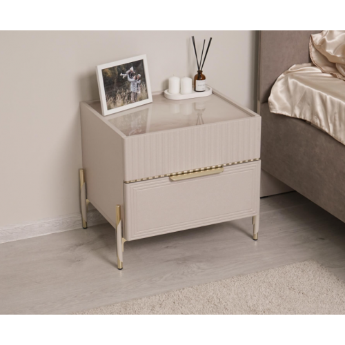 Прикроватная тумба «Флоренция 904.07» является частью модульной программы «Флоренция». Спальня «Флоренция» – это образец изящности и современной роскоши. Нежный цвет «Кашемир» создает светлую и теплую основу в интерьере, которая наполняет пространство спокойствием и гармонией. Оригинальные элементы в цвете «сатиновое золото» и элегантная фрезеровка подчеркивают утонченный дизайн коллекции.