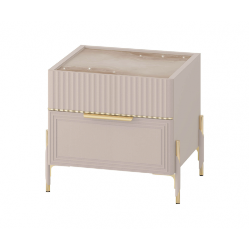 • Стеклянный топ тумбы декорирован дизайнерским рисунком «Мрамор». Легкое мерцание глиттера придает поверхности глубину и добавляет в интерьер нотку роскоши.