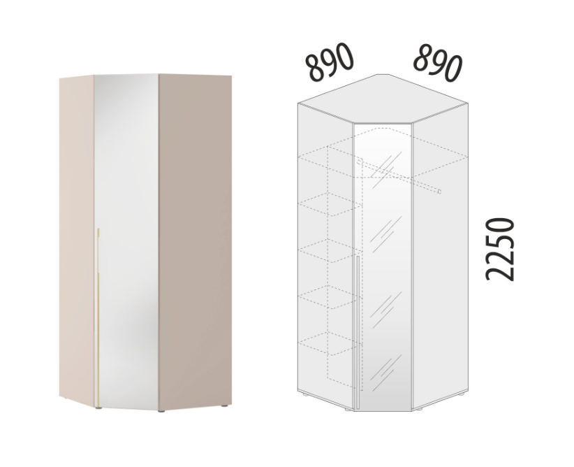 904.09 Шкаф угловой правый с зеркалом 890х890х2250 - Атлас Мебели