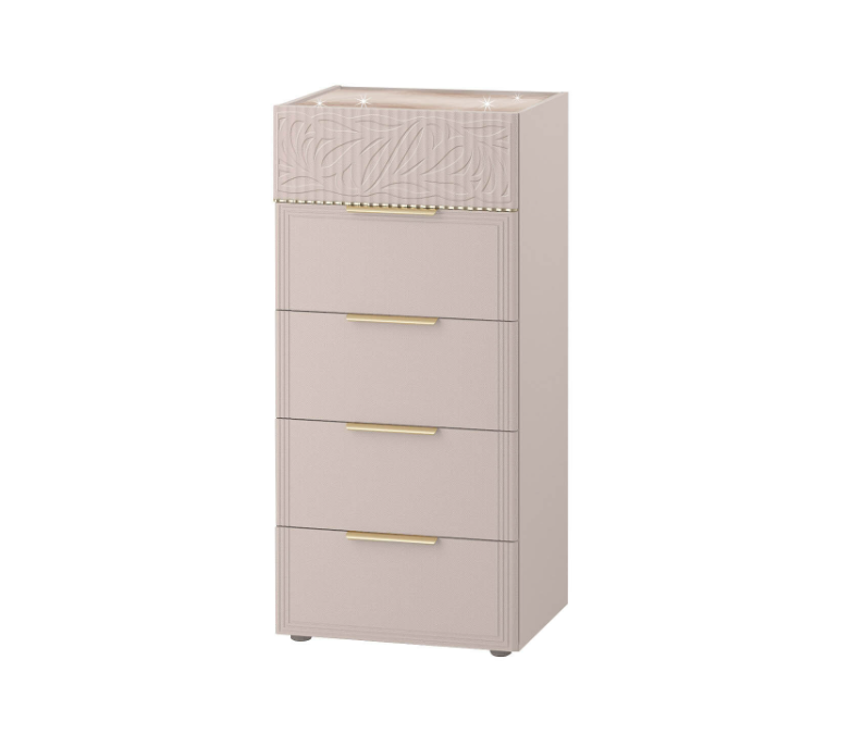 Комод «Флоренция 904.19» является частью модульной программы «Флоренция». Спальня «Флоренция» – это образец изящности и современной роскоши. Нежный цвет «Кашемир» создает светлую и теплую основу в интерьере, которая наполняет пространство спокойствием и гармонией. Оригинальные элементы в цвете «сатиновое золото», элегантная фрезеровка и изящный дизайнерский рисунок подчеркивают утонченный дизайн коллекции.