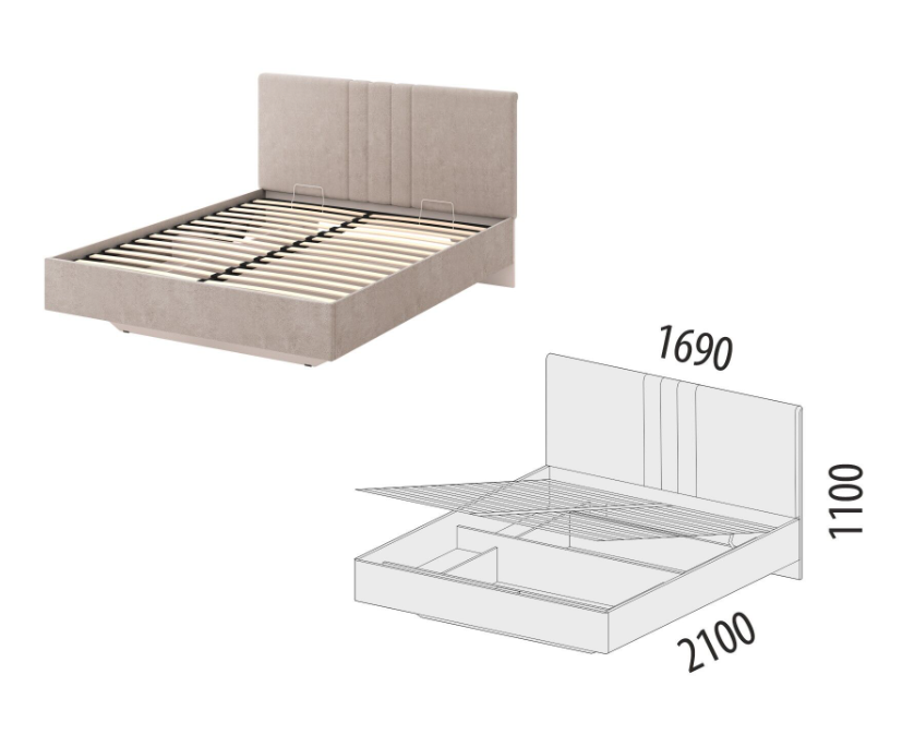 • В основании кровати предусмотрен вместительный короб для удобного хранения одеял, подушек и других вещей.