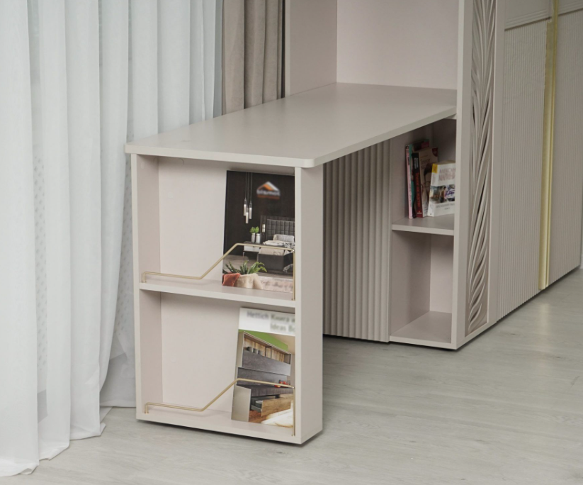 Стол письменный «Флоренция 904.28» является частью модульной программы «Флоренция». Спальня «Флоренция» – это образец изящности и современной роскоши. Нежный цвет «Кашемир» создает светлую и теплую основу в интерьере, которая наполняет пространство спокойствием и гармонией