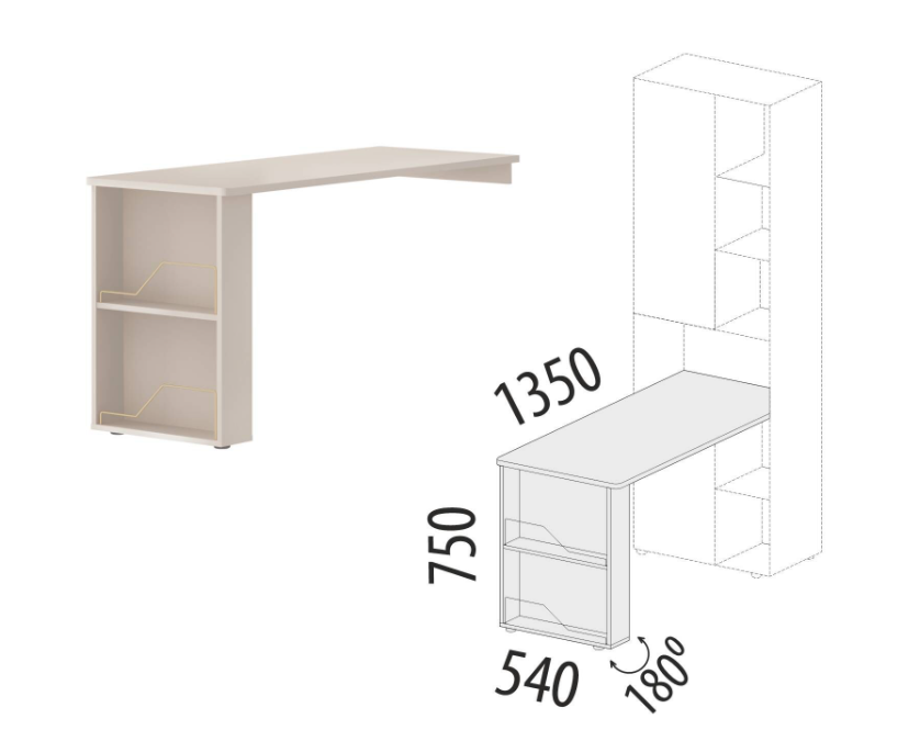 • Данный модуль можно использовать как самостоятельное изделие, для этого предусмотрено его крепление к стене. В комплекте со стеллажом «Флоренция 904.57» получается полноценное рабочее место для дома, габаритные размеры которого позволяют его разместить даже в комнате небольшого размера.