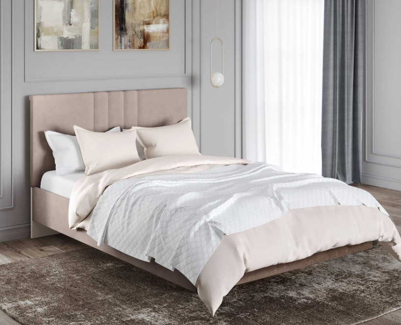 • Изголовье и корпус кровати обтянуты прочной и износостойкой тканью, приятной на ощупь. Такое дизайнерское решение привлекает внимание и придает интерьеру Вашей спальни ощущение уюта. Благодаря мягкому изголовью кровать отличается повышенной степенью комфорта.