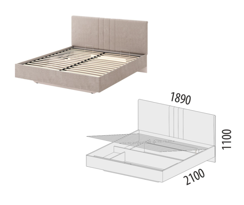 • В основании кровати предусмотрен вместительный короб для удобного хранения одеял, подушек и других вещей.