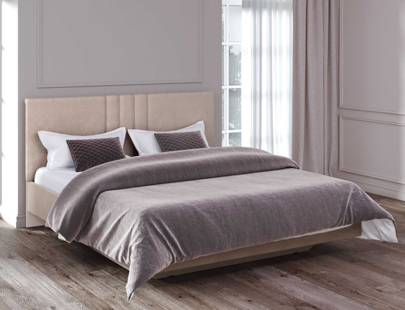 • Изголовье и корпус кровати обтянуты прочной и износостойкой тканью, приятной на ощупь. Такое дизайнерское решение привлекает внимание и придает интерьеру Вашей спальни ощущение уюта. Благодаря мягкому изголовью кровать отличается повышенной степенью комфорта.
