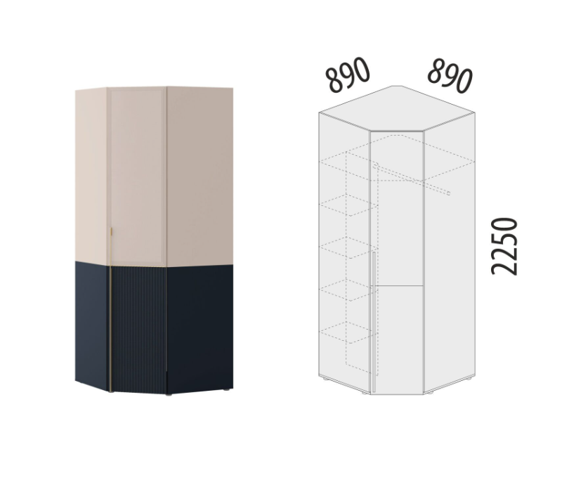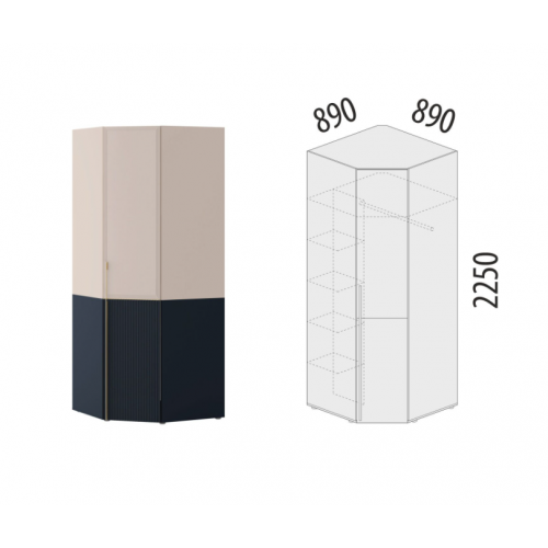 905.08 Шкаф угловой правый 890х890х2250 - Атлас Мебели