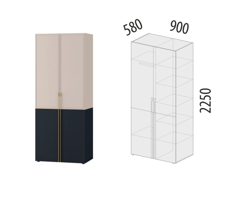 905.13 Шкаф двухдверный многофункциональный 900х580х2250
