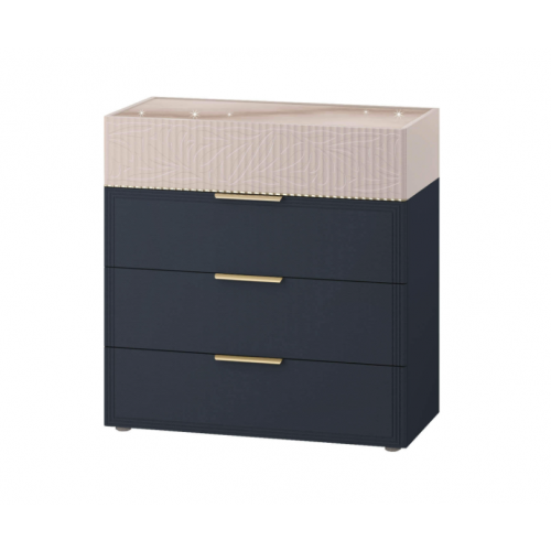Комод «Флоренция 905.18» является частью модульной программы «Флоренция». Спальня «Флоренция» – это образец изящности и современной роскоши. Цвета «Кашемир» и «Индиго» образуют стильный и теплый дуэт: светлый тон наполняет пространство мягкостью, а насыщенный темно-синий придает интерьеру глубину и изысканность. Оригинальные элементы в цвете «сатиновое золото» и элегантная фрезеровка подчеркивают утонченный дизайн коллекции.