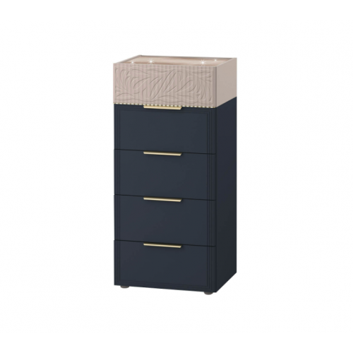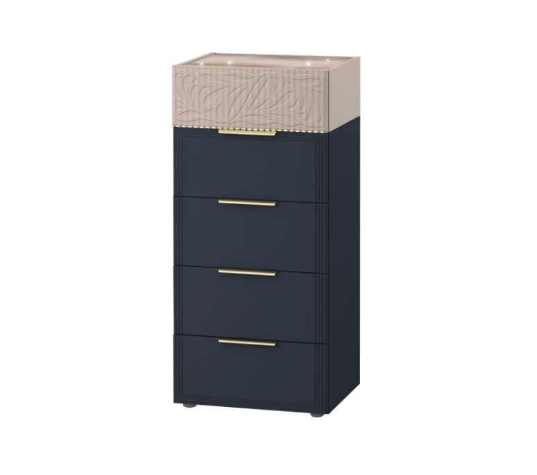 Комод «Флоренция 905.19» является частью модульной программы «Флоренция». Спальня «Флоренция» – это образец изящности и современной роскоши. Цвета «Кашемир» и «Индиго» образуют стильный и теплый дуэт: светлый тон наполняет пространство мягкостью, а насыщенный темно-синий придает интерьеру глубину и изысканность. Оригинальные элементы в цвете «сатиновое золото» и элегантная фрезеровка подчеркивают утонченный дизайн коллекции.