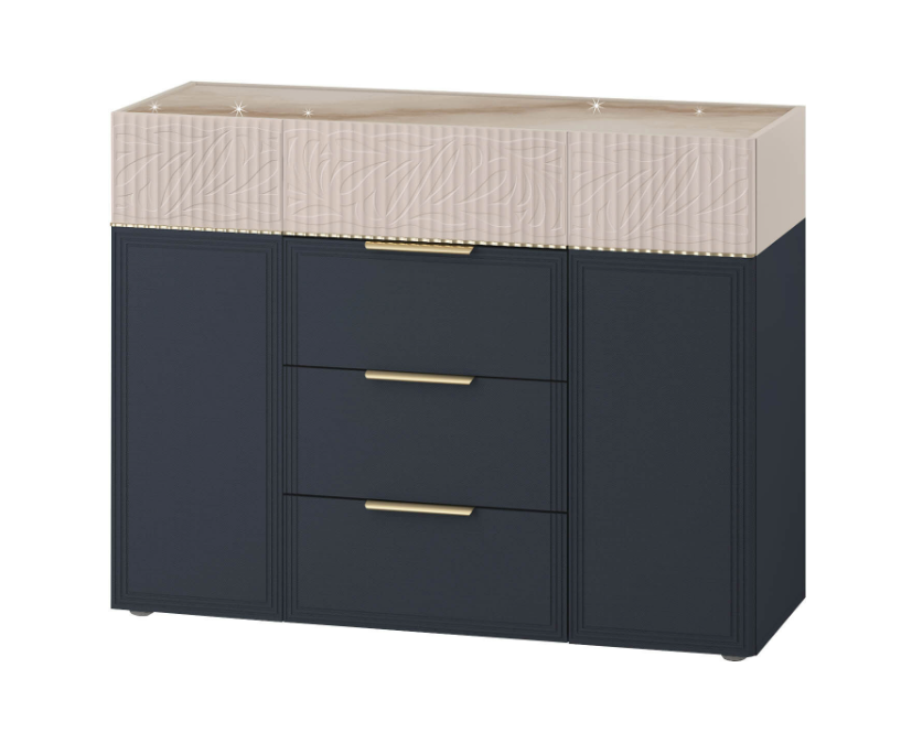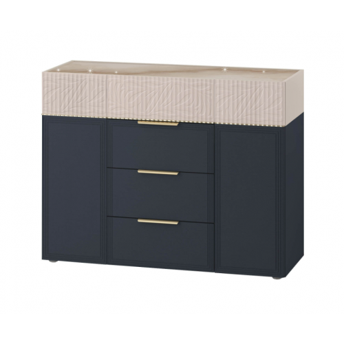 Комод «Флоренция 905.23» является частью модульной программы «Флоренция». Спальня «Флоренция» – это образец изящности и современной роскоши. Цвета «Кашемир» и «Индиго» образуют стильный и теплый дуэт: светлый тон наполняет пространство мягкостью, а насыщенный темно-синий придает интерьеру глубину и изысканность. Оригинальные элементы в цвете «сатиновое золото» и элегантная фрезеровка подчеркивают утонченный дизайн коллекции.