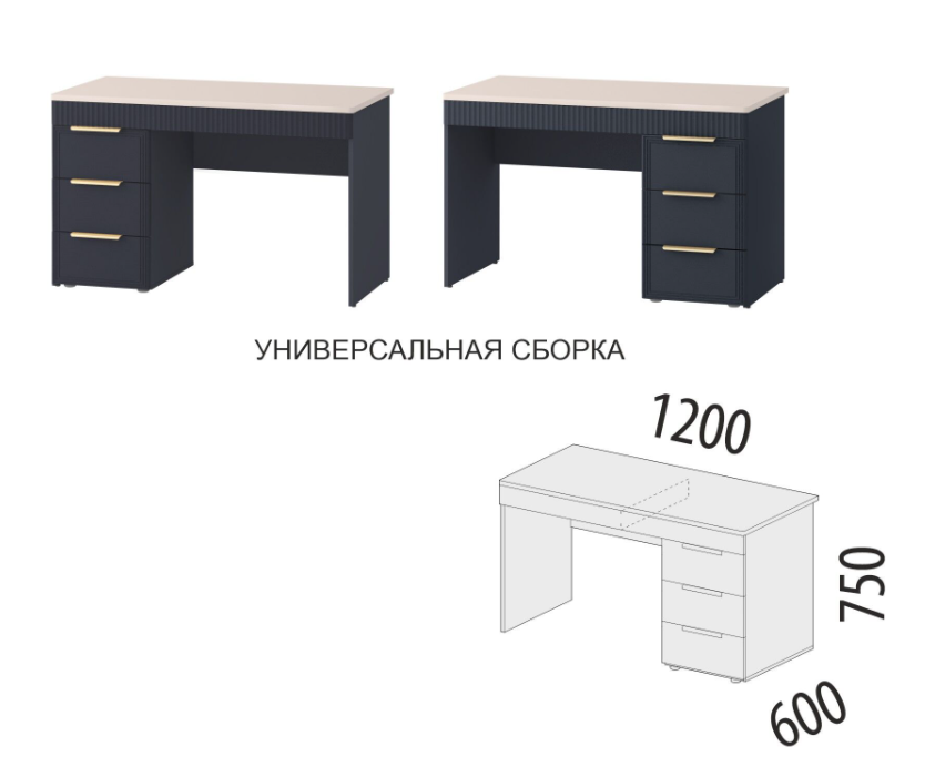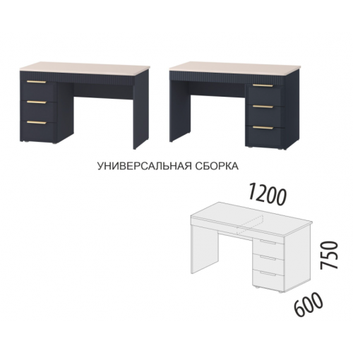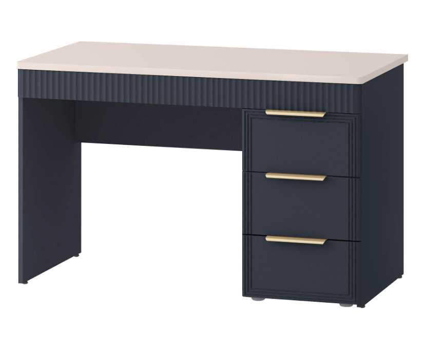 Стол письменный «Флоренция 905.24» является частью модульной программы «Флоренция». Спальня «Флоренция» – это образец изящности и современной роскоши. Цвета «Кашемир» и «Индиго» образуют стильный и теплый дуэт: светлый тон наполняет пространство мягкостью, а насыщенный темно-синий придает интерьеру глубину и изысканность. Оригинальные элементы в цвете «сатиновое золото» и элегантная фрезеровка подчеркивают утонченный дизайн коллекции.