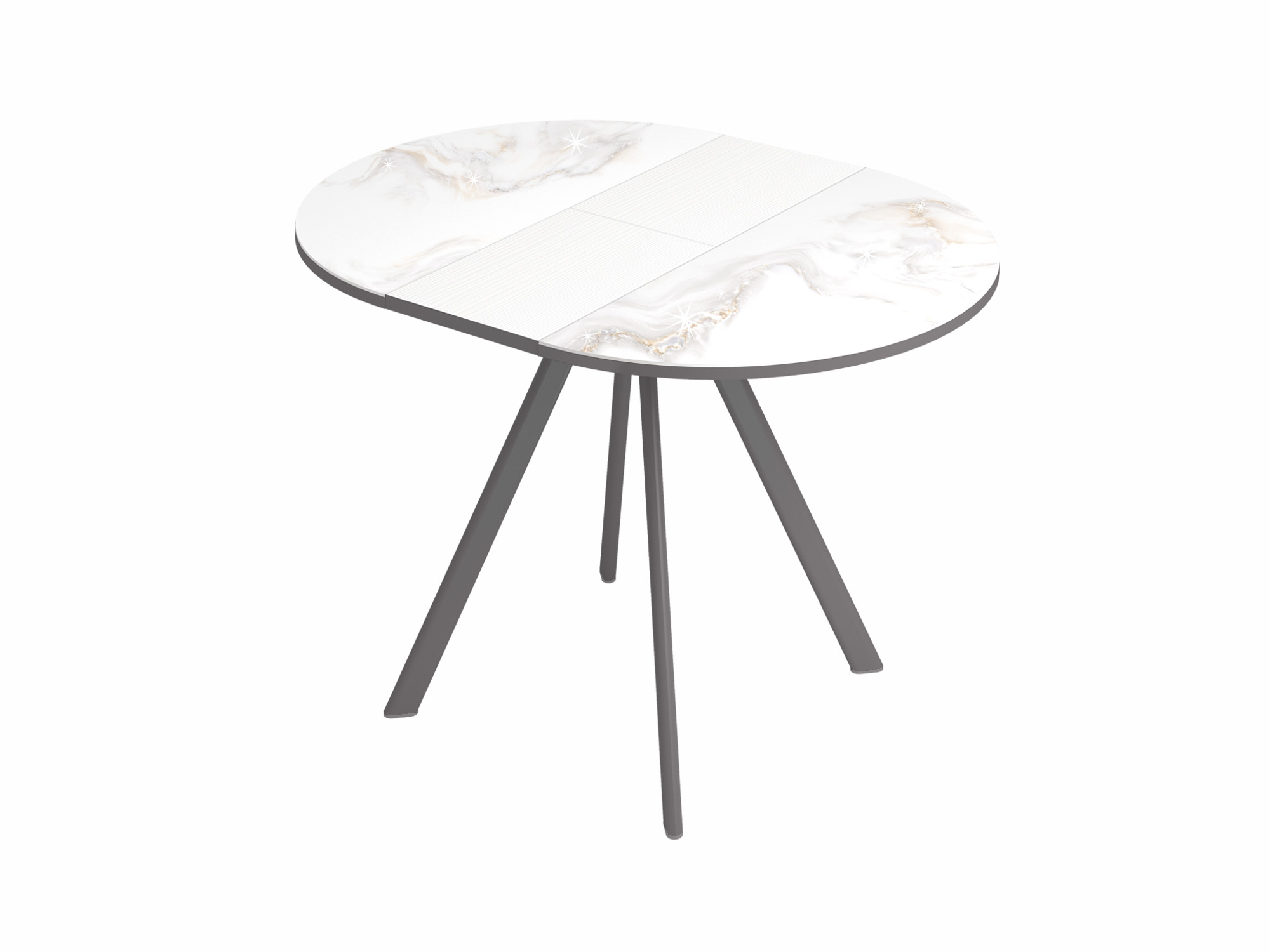 За одну цену Вы получаете два стола. В сложенном виде – это компактный круглый стол диаметром 90 см, в разложенном – овальный стол с размером столешницы 90х120 см.