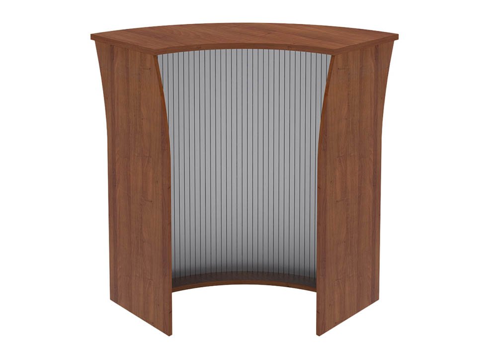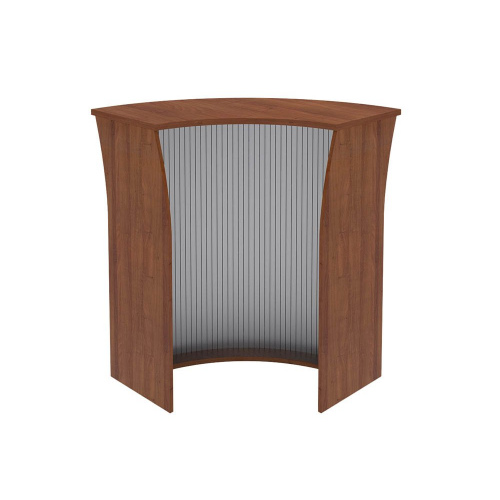 Универсальная стойка ресепшн угловая IMAGO 93,5х93,5 для пользования в сфере услуг и продаж и офисного размещения, размеры - 935х1150х935 мм, цвет - Орех Французский. Солидная и прочная столешница 22 мм, надежная толщина опор - 18 мм. Цвет столешницы и опор - орех Французский, фронтальная панель - роллетное полотно.