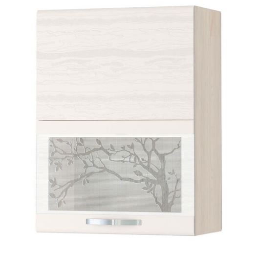 Шкаф-витрина «Графит 74.80.2» является частью модульного набора для кухни «Графит». 3D-эффект на фасаде, имитирующий текстуру коры дерева, подчеркивает оригинальный дизайн. Фасад с рисунком на стекле придает кухне изысканный внешний вид. Дверцы шкафа оснащены подъемным механизмом со складной системой, который позволяет легким движением открыть сразу две дверцы и удерживать их в любом положении.