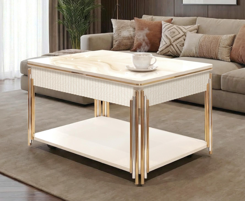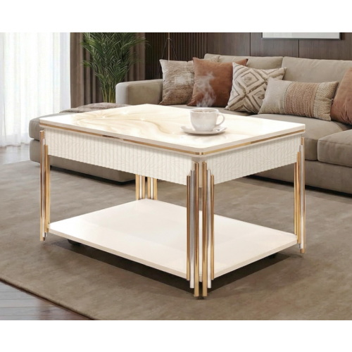 Агат-40 (02) Орхидея белая/Золото-Хром Стол журнальный 900(1300)х650(900)х530(770) - Атлас Мебели