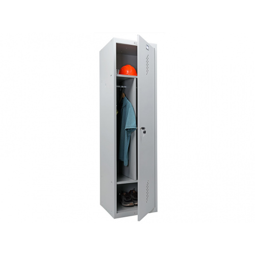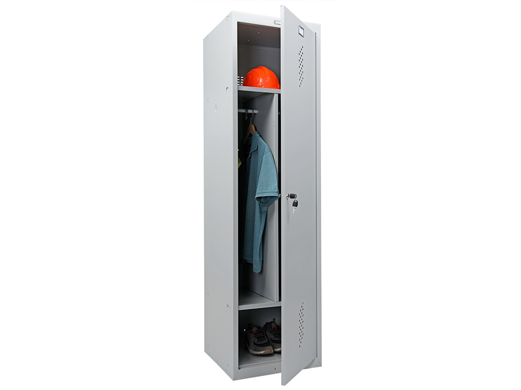 Предназначен для хранения одежды в производственных, спортивных и других помещениях, хоз. инвентаря, а также для организации камер хранения. жесткий корпус, усилен сварной рамой вертикальная сборка при помощи зацепов, саморезов и винтов ключевой замок «Практик» (2000 комбинаций) вентиляционные отверстия в дверях и задней стенке конструкция шкафов позволяет скреплять их между собой возможность за счет общей боковой стенки и специальных элементов боковых креплений собрать в ряд неограниченное количество модулей. (Модуль из локеров с различным количеством секций производится под заказ) возможность установки дверей с левой или правой стороной открывания комплектация: вертикальная перегородка ML 1200, 2 полки, перекладина, крючки поставляются в разобранном виде Размеры внешние, мм (ВхШхГ): 1830x500x500 Размеры внутренние, мм (ВхШхГ): 1770x498x460 Вес, кг: 22.2 Количество полок: 2 Тип замка: ключевой Цвет: серый полуматовый (RAL 7038) Тип покрытия: порошковое Гарантия: 1 год Производитель: ПРОМЕТ Страна: Россия