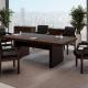 Изысканная простота линий и необычные формы кабинета Sydney подчеркнуты роскошным темным цветом с выраженной древесной текстурой. Столешницы дополнены бюварами из черной экокожи. Благородство минималистичного дизайна и функциональность элементов — основные черты этого кабинета, созданного для руководителя с безупречным вкусом.