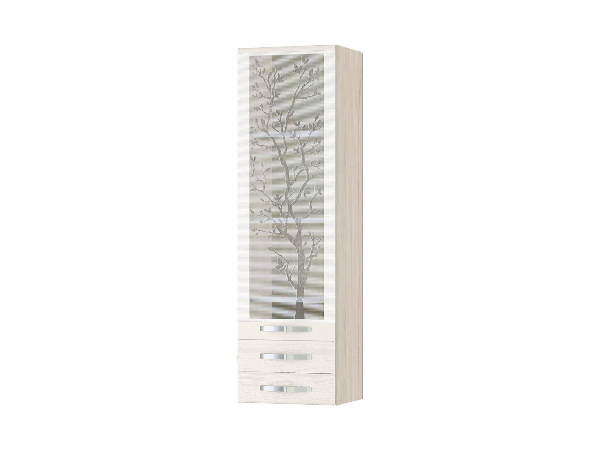 Шкаф-пенал «Графит 74.31.2» является частью модульного набора для кухни «Графит». Фасад с рисунком на стекле придает кухне изысканный внешний вид. Для кромления торцов полок используется специальный кант нейтрального серого цвета, который позволяет скрыть видимость полок за стеклом, не отвлекая от дизайна фасада кухни. Плавное закрывание дверцы обеспечивается петлями с доводчиками. Выдвижные ящики оснащены шариковыми направляющими, что обеспечивает комфорт в их использовании. Модуль является универсальным и может быть собран как с левым, так и с правым открыванием дверцы.