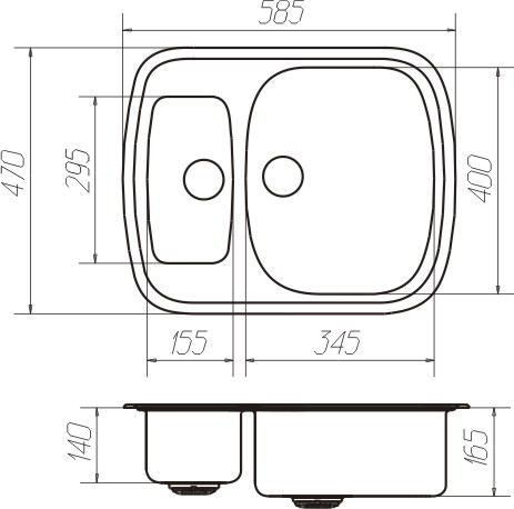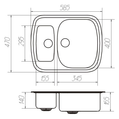 Описание Модель А06 - универсальная (правого и левого исполнения) мойка с двумя чашами - основной и малой. Четкое разделение зон, удобна для одновременного использования под разные задачи. Отверстие под смеситель выполняется при монтаже мойки. Идеальна для небольшой кухни. Модель А06 можно монтировать в тумбы шириной от 800 мм (с условием, что справа и слева от краев мойки есть столешница). Внешние размеры: длина 585 мм, ширина 470 мм. Глубина чаш 165 мм и 140 мм