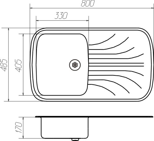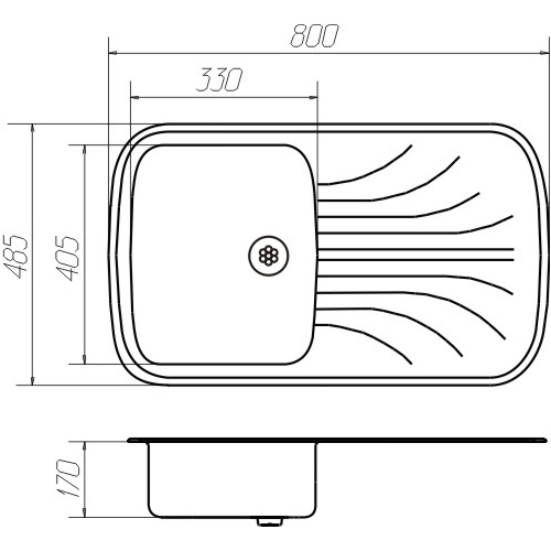 Описание Модель А08 - универсальная мойка (правого и левого исполнения) с глубокой чашей. Большое крыло дает дополнительную рабочую поверхность и предохраняет столешницу от излишней влаги. Модель этой мойки добавит комфорта Вашей кухне. Модель А08 можно монтировать в тумбы шириной от 500 мм (с условием, что справа и слева от краев мойки есть столешница). Отверстие под смеситель выполняется при монтаже мойки. Внешние размеры: длина 800 мм, ширина 485 мм. Глубина чаши 170 мм