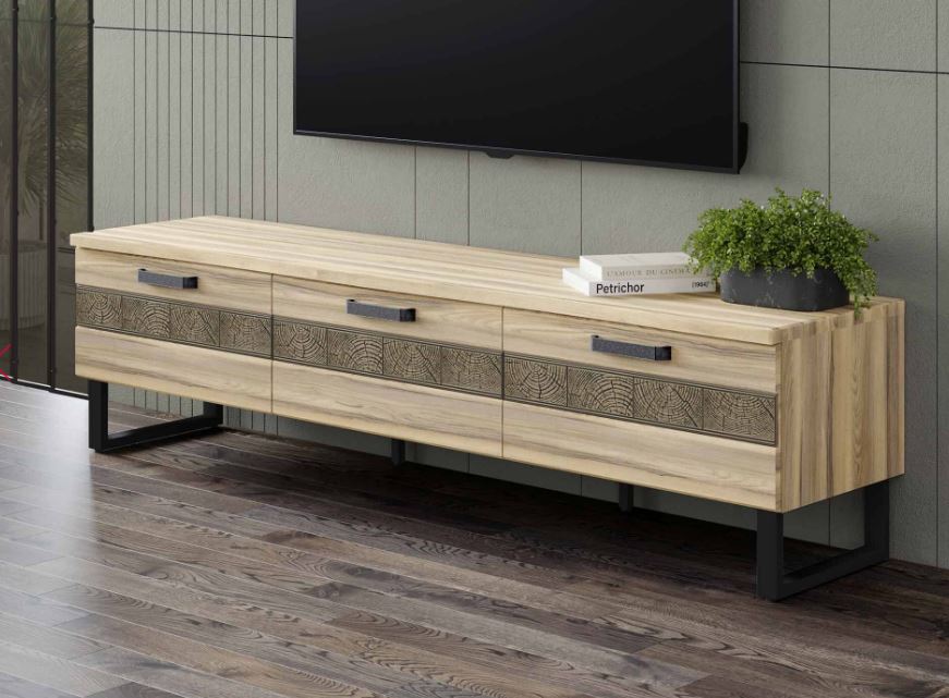 Тумба «Бруклин 607.03» является частью модульной программы «Бруклин 607». Коллекция гостиной «Бруклин» в стиле «Лофт» очаровывает своей природной красотой и выразительностью материалов. Текстура дерева, контрастные металлические акценты и декор, точно передающий фактуру натурального дерева как на ощупь, так и визуально, придают гостиной уникальность и неповторимость.