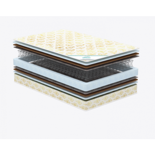 Описание: Двухсторонний 7-слойный матрас: • блок зависимых пружин Bonnell (128 пружин на кв.м), • изолирующий термовойлок, 0.5 см, • кокосовая койра, 1+1 см, • упругий слой Elastic Foam, 2+2 см. Матрас усилен специальным коробом из Elastic Foam 40 мм по всему краю. Комфортный сон и удобство.Лучший вариант в эконом сегменте, когда важен баланс качества и цены.