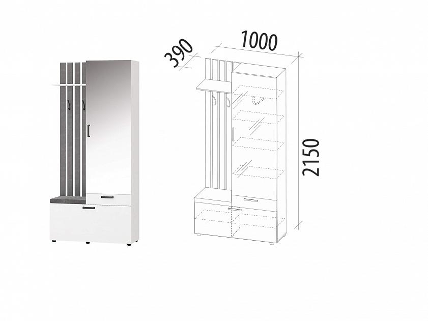 400.07 Панель с крючками комбинированная с зеркалом лев/прав 1000х390х2150 - Атлас Мебели