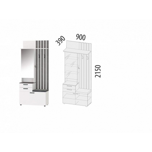 400.08 Панель с крючками комбинированная с зеркалом лев/прав 900х390х2150 - Атлас Мебели
