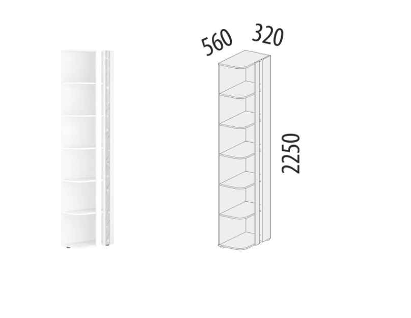 901.17 Стеллаж торцевой лев/прав 320х560х2250 - Атлас Мебели
