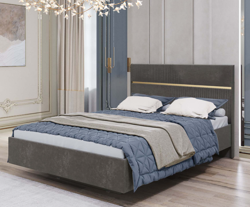 Стильная отстрочка в сочетании с металлизированной декоративной вставкой с эффектом шлифованного золота придают кровати изысканный внешний вид.