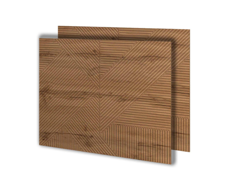 - Панель декорирована рисунком с реалистичным 3D-эффектом. Он делает интерьер более свежим, наполняет его жизнью, а натуральный медовый цвет дерева «Дуб Вотан» добавляет комфорта и тепла.