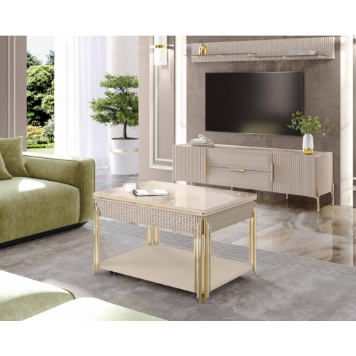 -30% Агат-42 (02) Мрамор бежевый/Кашемир Лен/Золото Стол журнальный 1000х600х410