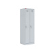 Шкаф металлический разборный двухсекционный, повышенной жесткости для хранения сменной одежды. В каждом отделении: полка для головного убора, перекладина для вешалки и крючки для одежды, врезной замок. Шкаф может комплектоваться полками для обуви (в комплект не входят). Полимерное порошковое покрытие светло-серого цвета (RAL 7035).