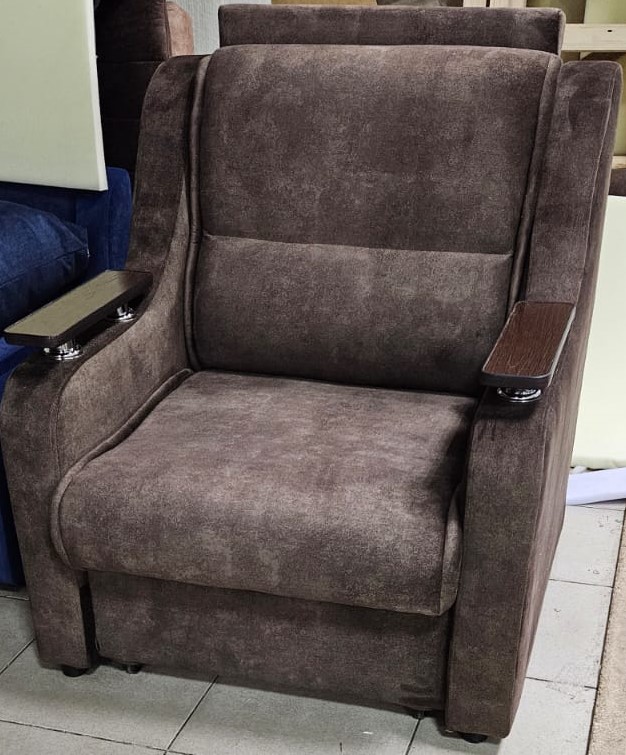 Подлокотники кресла декорированы лаковым деревянным покрытием, которое запросто можно использовать как столешницу, - например, поставить чашку кофе.В разложенном виде кресло-кровать образует просторное спальное место.