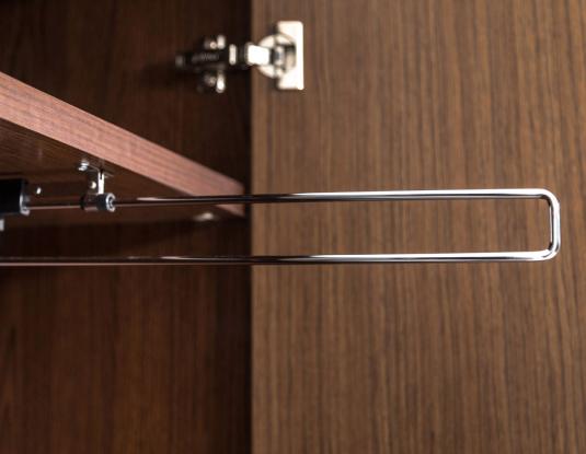 Гардероб и шкаф для бумаг имеют размер 94х45х211 см. Внутри гардероба верхняя полка во всю ширину шкафа. Высота верхней секции 29,7 см. Вертикальная перегородка делит гардероб на две части: 26,3 см отведено под полки, 60 см под гардеробную часть. Гардеробная часть оснащена выдвижной штангой.