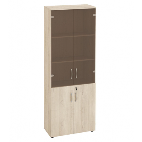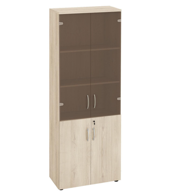 Стеллаж «Альфа 64 533» является частью модульного набора мебели «Альфа». Укомплектован стеклянными и глухими дверцами. Модуль разделен полками на пять секций. Устойчивость конструкции придают межсекционные стяжки. Регулируемые по высоте ножки компенсируют возможные неровности пола.