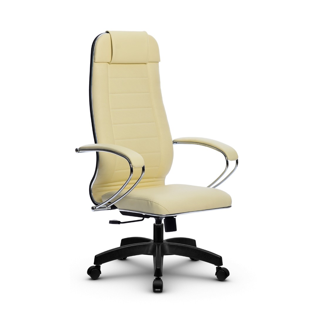 Высокая спинка кресла имеет мягкий накладной подголовник, комплектуемый дополнительной вкладкой, увеличивающей объем.