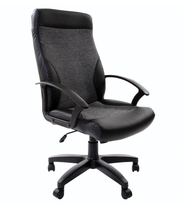 Кресло руководителя BRABIX "Trust EX-535", экокожа черная, ткань серая, 531383 - Атлас Мебели