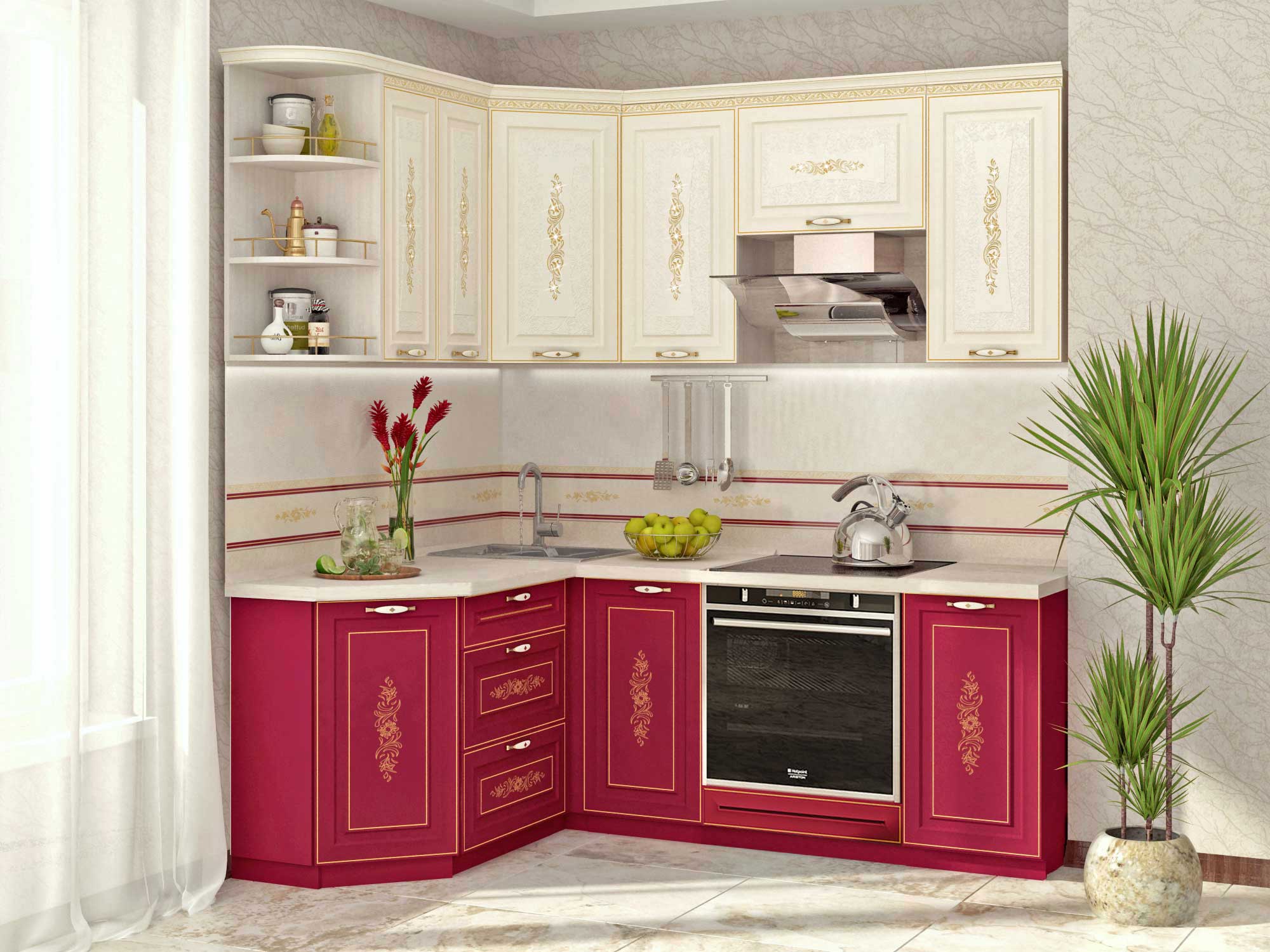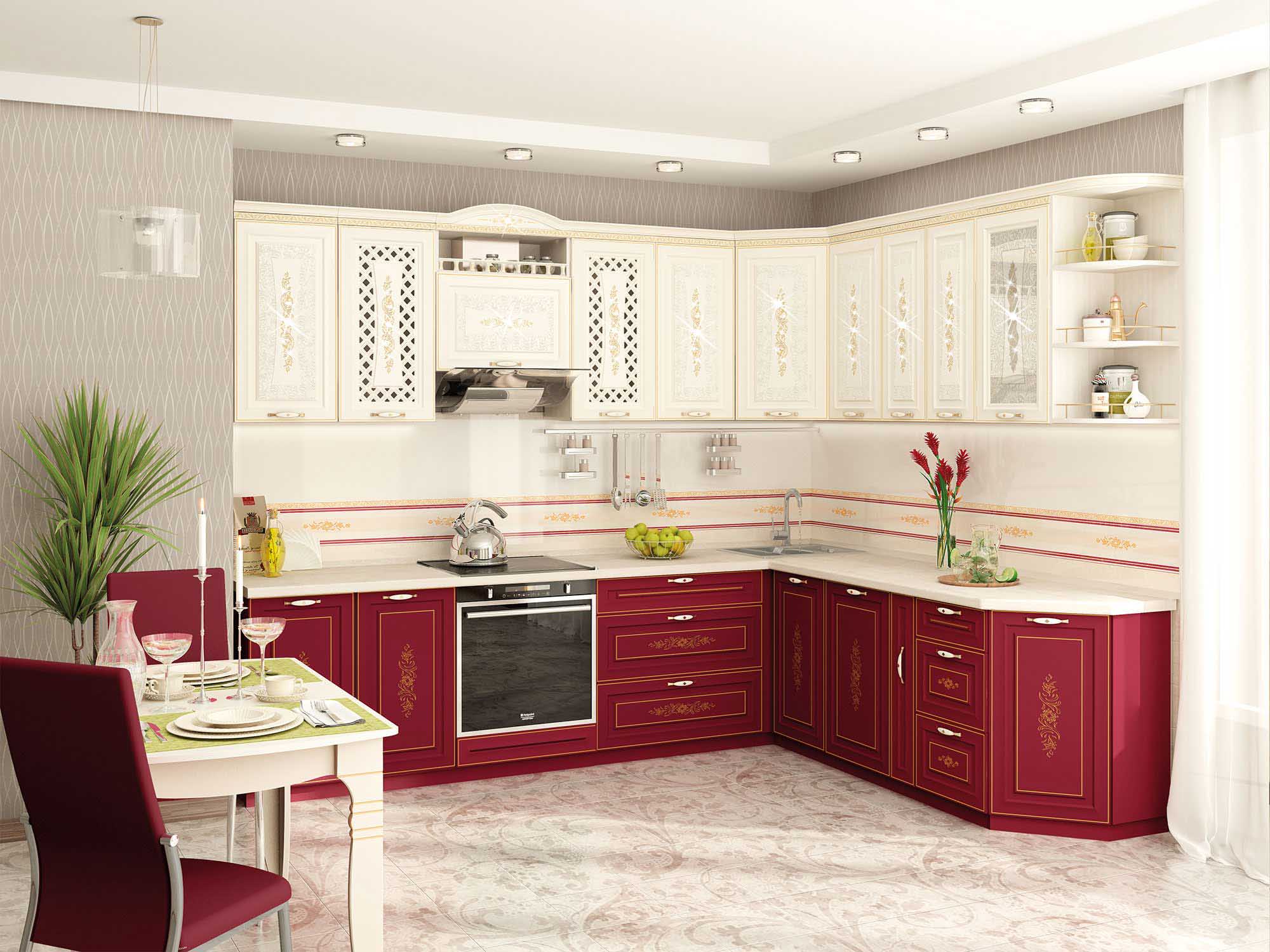 Нежное кружево с 3D-эффектом, нанесенное на фасады, придает кухне легкость и изысканность, а блеск патины и кристаллов премиум-класса благородство и особый шик.