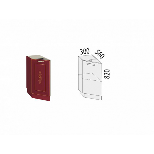 Торцевой кухонный шкаф «Виктория 20.65» входит в коллекцию мебели для кухни «Виктория». Дверца открывается в левую сторону. Плавное закрывание дверцы обеспечивают петли с доводчиками. Боковая наружная стенка из МДФ придает модулю законченный внешний вид. Регулируемые по высоте ножки позволяют компенсировать возможные неровности пола. Глубина стола с учетом столешницы 600 мм. Модель украшена фрезеровкой и устойчивым к истиранию рисунком патиной. Оригинальные ручки подчеркивают изысканный дизайн.