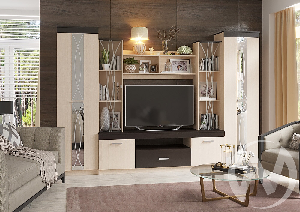 Стенка "МЕЛАНЖ" 2860*468*2090 /Венге/Белфорд/ - Атлас Мебели